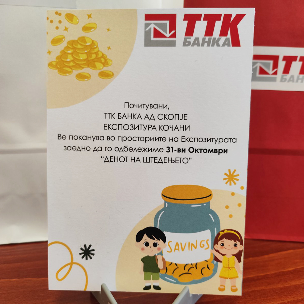 По повод Светскиот ден на штедењето на 31 октомври и во деновите кои следеа, под мотото „Паметно штеди за иднина што вреди“, ТТК Банка АД Скопје традиционално р